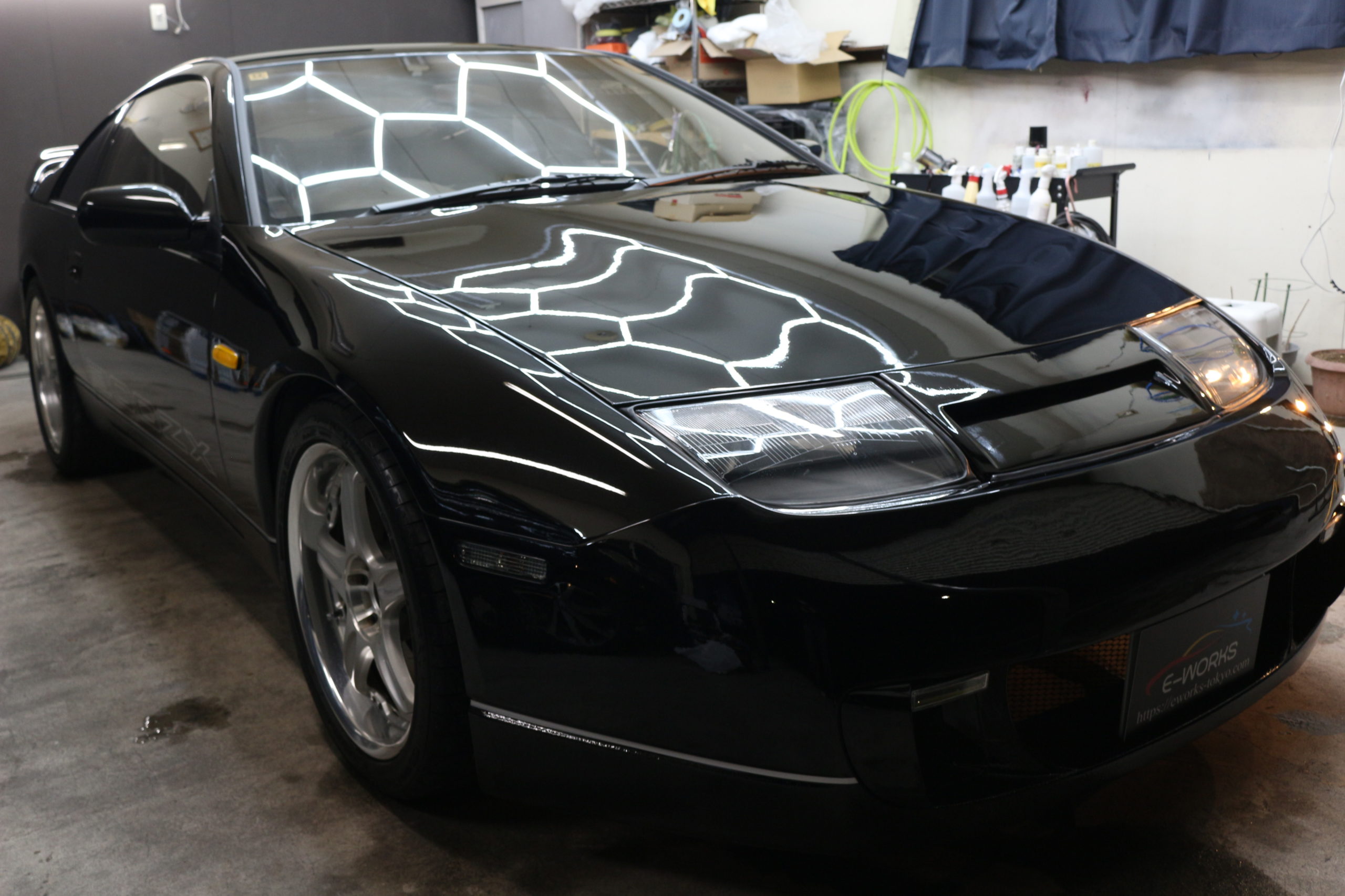 施工後のZ32は、ブラック特有の深い艶が戻りました。